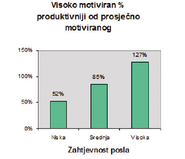 Koji su znaci koji ukazuju da djelatnici postaju imuni na šarm tvrtke i što mogu manageri učiniti da okrenu proces u pozitivnom smjeru? Usporedimo li produktivnosti motiviranih zaposlenika sa slabo (srednje) ili nikako (nisko) motiviranima, dobivamo sljedeću sliku: